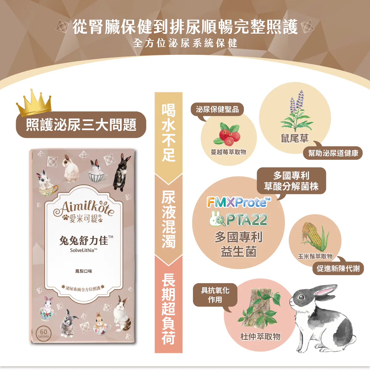 【愛米可緹®兔兔舒力佳™】 全方位泌尿系統保健 從腎臟保健到排尿順暢完整照護