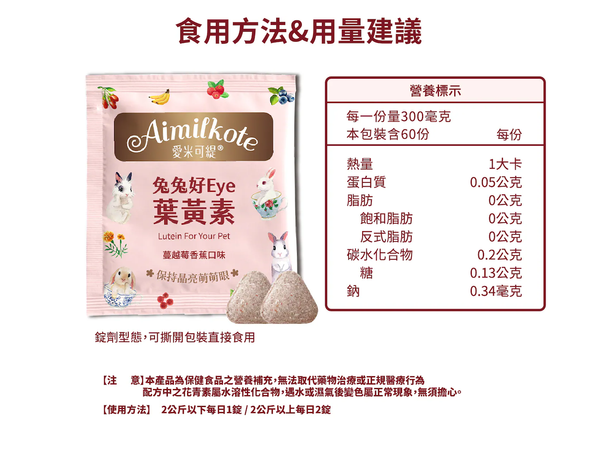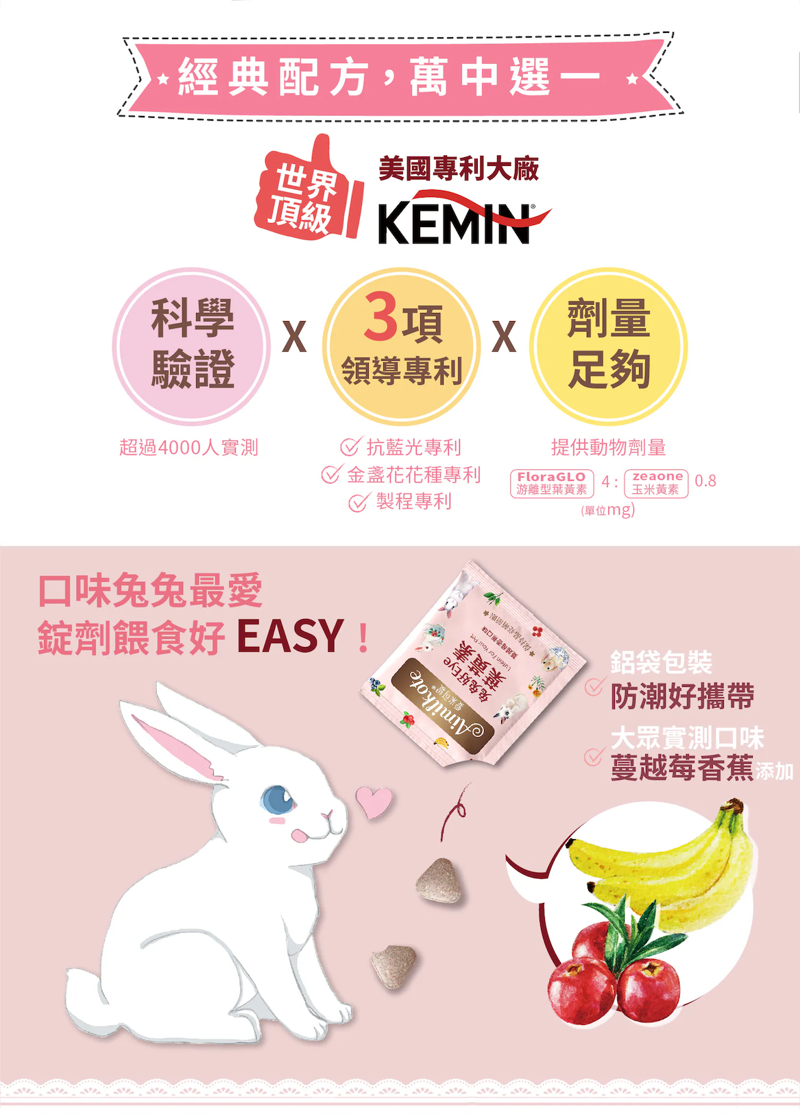 • 專為兔兔研發的素食配方,劑量符合兔兔需求