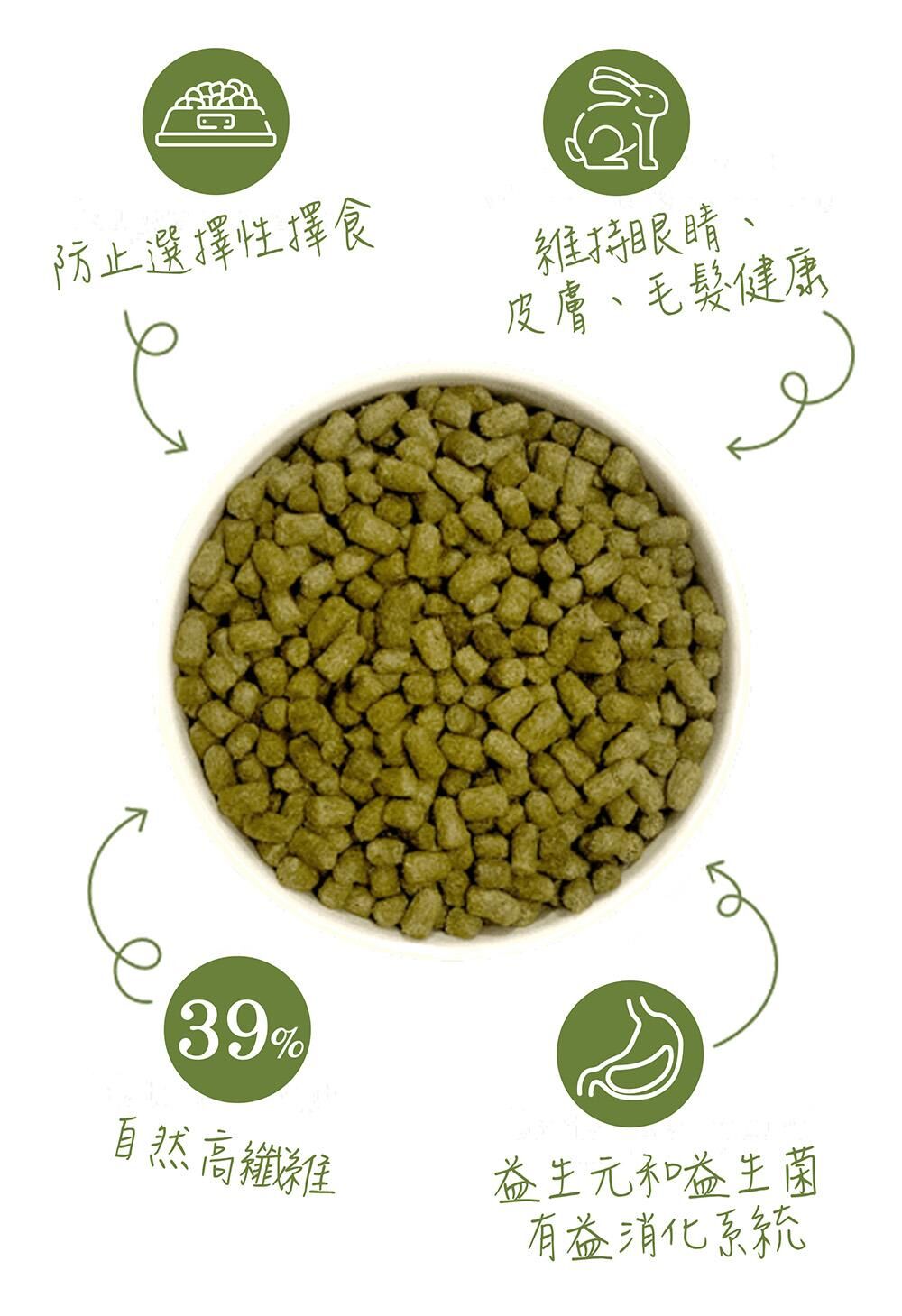 美味的奧勒岡葉,維持活力幫助消化。 自然高纖維,防止選擇性攝食。 抗氧化配方有助維持抵抗力。 添加維生素和礦物質,幫助眼睛、皮毛保健。